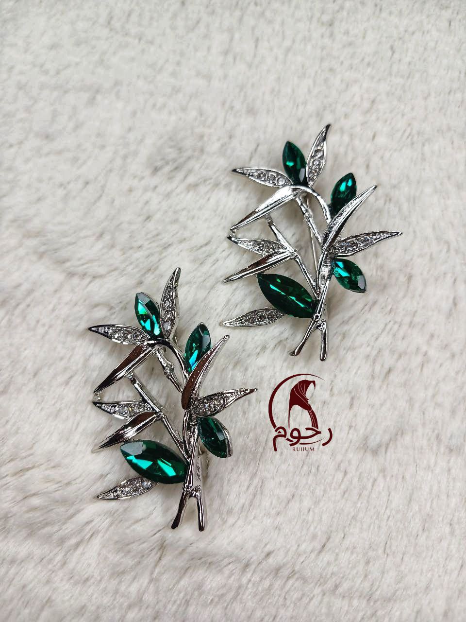 A stunning silver-tone brooch featuring a naturalistic cluster of leaves. The design is beautifully set with brilliant emerald-green faceted crystals and dazzling clear rhinestones for maximum sparkle. A perfect accessory to add a vibrant pop of color and luxurious shine to any outfit.